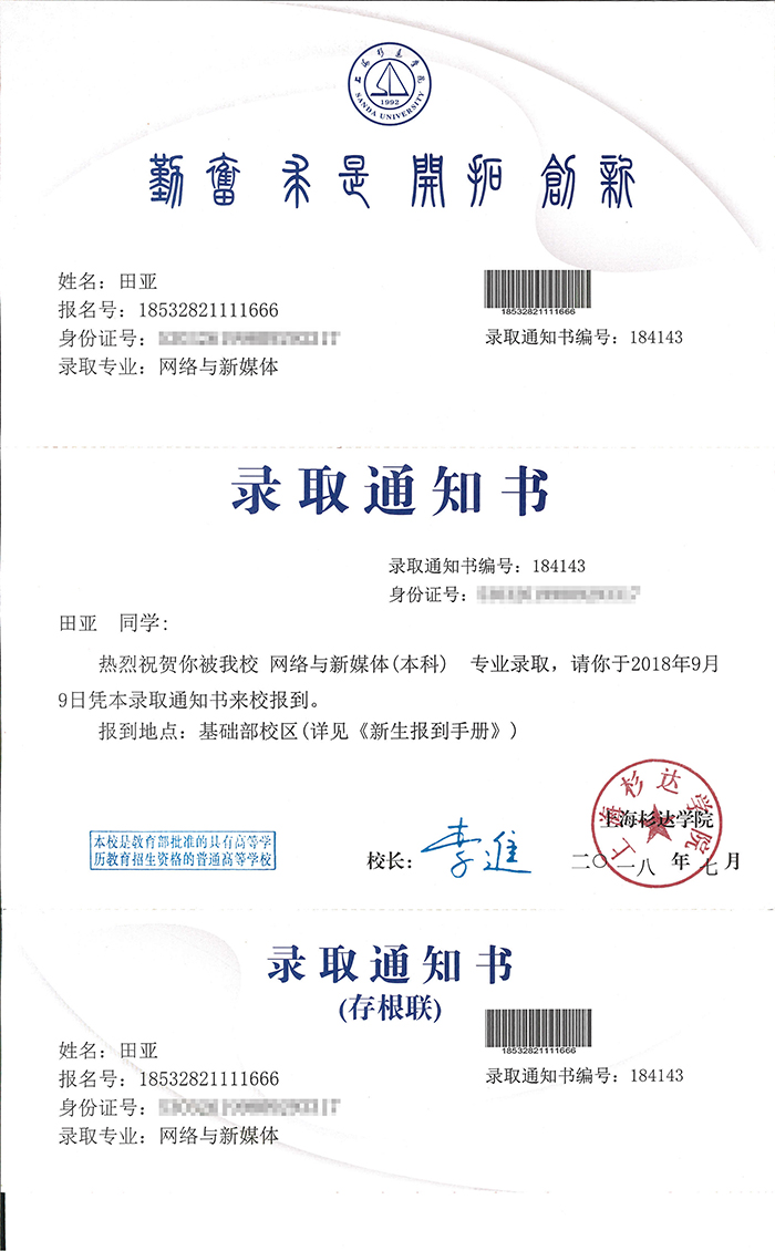 ——記好孩子學(xué)校優(yōu)秀畢業(yè)生田亞被上海杉達學(xué)院錄取