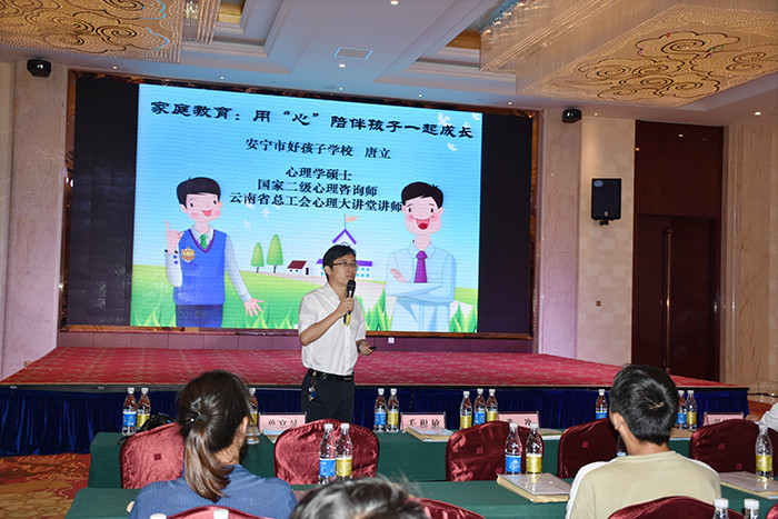 本次家長(zhǎng)培訓(xùn)會(huì)學(xué)校派出了學(xué)校副校長(zhǎng)、國(guó)家二級(jí)心理咨詢(xún)師周榕樺老師和學(xué)校心理學(xué)碩士、國(guó)家二級(jí)心理咨詢(xún)師、云南省總工會(huì)心理大講堂講師唐立向參加培訓(xùn)的家長(zhǎng)們進(jìn)行現(xiàn)場(chǎng)授課。