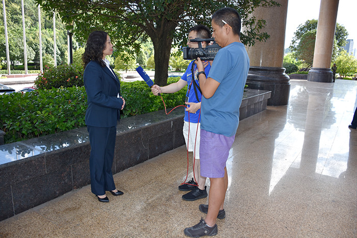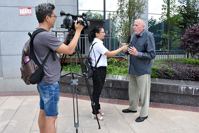 來(lái)自瑞士的學(xué)生家長(zhǎng)接受采訪