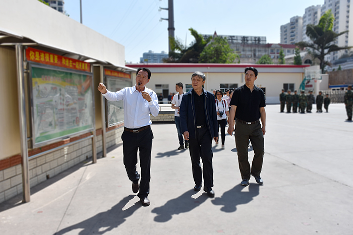 2019年4月19日上午,昆明市人大常委會黨組成員蘇宇率領(lǐng)市人大社建委主任和松華、副主任強東育、團市委書記郝國棟、市教育體育局副局長呂麗、市司法局法律事務(wù)處處長何茹等一行10人,在安寧市人大常委會黨組書記、主任尹貴生、安寧市人民政府副市長、市公安局局長劉文先等領(lǐng)導(dǎo)的陪同下蒞臨我校調(diào)研指導(dǎo)工作。