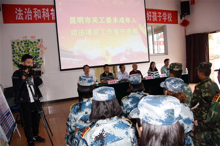 活動開始,趙主任首先就未成年人司法項目工作在預防青少年犯罪和青少年觸法權(quán)益維護工作中的重要性,以及政府在開展未成年人司法保護工作中的努力和成效,向大會作了精彩致辭。隨后,趙主任還對孩子們作了殷切勉勵:“這是我第四次來好孩子學校,雖然每一次來基本都是新面孔,但每一次來給我的印象都很深,很感動。我曾是一名軍人,孩子們現(xiàn)在端正的坐姿、整齊的鼓掌以及良好的精神面貌,都讓我無比的自豪和欣慰,你們都是好孩子,出去也會是一個好兵。希望孩子們珍惜好人生的經(jīng)歷,珍惜好在好孩子的這段時光,努力提升自己,樹立遠大目標,將來做一個德才兼?zhèn)涞娜!?br style="font-family: ;">    隨后,趙主任一行在我校魯植校長的陪同下,深入學校教學樓、宿舍樓等實地查看了校園環(huán)境,并在多媒體教室觀看了學校教學活動短片。其間,魯校長向趙主任詳細匯報了學校近期的各項教育教學工作開展情況。聽后,趙主任對我校的各項工作給予了高度肯定,尤其是夸贊學校法治宣傳教育開展得有聲有色,每年都有不一樣的新內(nèi)容呈現(xiàn)出來,無愧于“昆明市青少年法治教育基地”這個光榮稱號。
