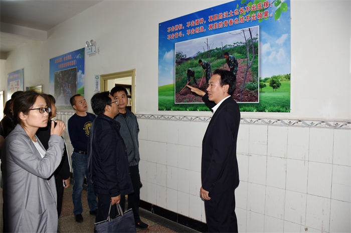 喬局長一行早早就驅(qū)車從石屏出發(fā),經(jīng)過三個多小時的車程,到達學(xué)校也才剛過十點,他們沒有坐下來休息,而是立即投入工作,這種精神讓我校在場人員十分感動與敬重!領(lǐng)導(dǎo)們到達學(xué)校后,首先依次參觀了學(xué)校的辦公區(qū)、教學(xué)區(qū)、生活區(qū),并在多媒體教室觀看了教學(xué)活動短片。調(diào)研組被我校嚴(yán)格但又不失溫暖的管理深受感染,每到一處都不是走馬觀花,看得很仔細,問得也很精準(zhǔn),還不時拿出手機拍照。我們知道,同樣關(guān)注著青少年健康成長的各位領(lǐng)導(dǎo)到訪,都在用自己的眼睛看,用自己的腳步量。