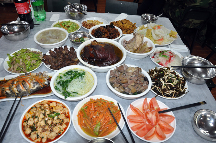 為了準(zhǔn)備豐富的年夜飯,老師和同學(xué)們從上午就開(kāi)始忙碌著,一起幫著學(xué)校廚師們打著下手。你看,有的撿菜,有的洗菜,有的切肉......到了下午,一盤(pán)盤(pán)色香味俱全的菜肴就呈現(xiàn)在大家面前了,伴隨著隆隆的鞭炮聲,年夜飯開(kāi)始了。