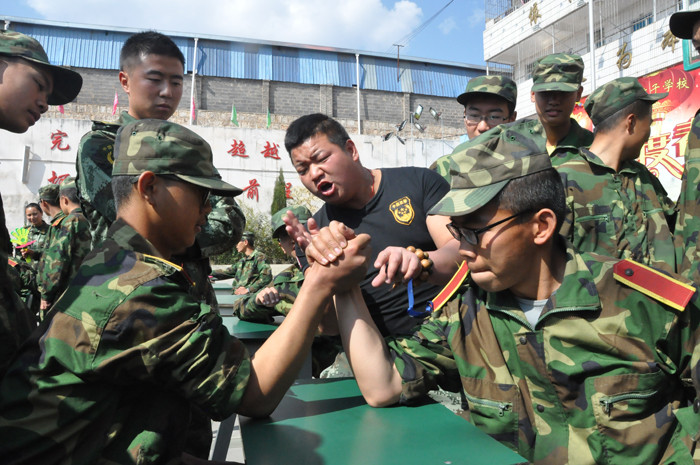 同學(xué)們?cè)缭缇驮诓賵?chǎng)上擺好桌椅等待比賽,隨著一聲哨響,比賽正式開始了。同學(xué)們摩拳擦掌地坐到了指定位置,開始“戰(zhàn)斗”起來,每位選手都緊緊地握住對(duì)方的手,卯足了勁往自己這邊扳。有的由于力量懸殊,很快敗下陣來;有的趁對(duì)方不備,猛往自己懷中一壓,還沒等對(duì)方反應(yīng)過來,手已經(jīng)被壓在桌上了;有的相持不下,鼓著腮、瞪著眼,臉漲得像個(gè)紅蘋果;有的不甘示弱,拼命想把對(duì)方的手壓下去,無奈還是沒有還手之力。場(chǎng)上的啦啦隊(duì)員,有的在揮手喊加油,有的急得直跺腳,有的不停地說道“不行,不行,他太強(qiáng)了!”操場(chǎng)上可謂是一番熱鬧至極的景象。