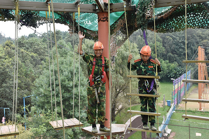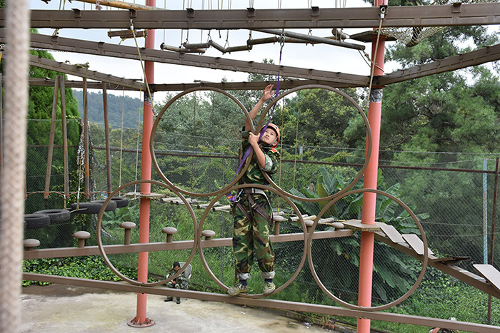 在輕松愉快的熱身活動后,孩子們熱情高漲、氣氛熱烈,積極參與挑戰(zhàn)了天使之手、凌空飛躍、探險樂園等30余個項目。在完成挑戰(zhàn)的過程中,孩子們團結互助,相互激勵、鼓勁,發(fā)揚了不怕苦、不怕累的精神,以不斷挑戰(zhàn)自我的勇氣,克服了心理恐懼、突破了心理障礙,用心感悟了“合作的必須”、“信任的可貴”、“堅持的重要”等。那些平時理解起來比較深奧的道理在體驗中得到“頓悟”,那些一直困擾的情緒在游戲中愉快“化解”,孩子們在活動中都成了理論者、實踐者、反思者。值得驕傲的是,全體隊員,不論男女,無一掉隊,全部完成了預期的挑戰(zhàn)項目,領略了“一覽眾山小” 的壯麗景象。