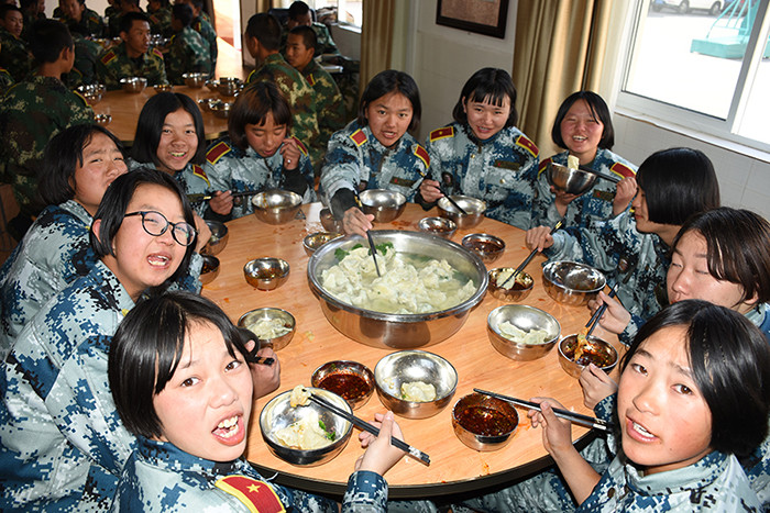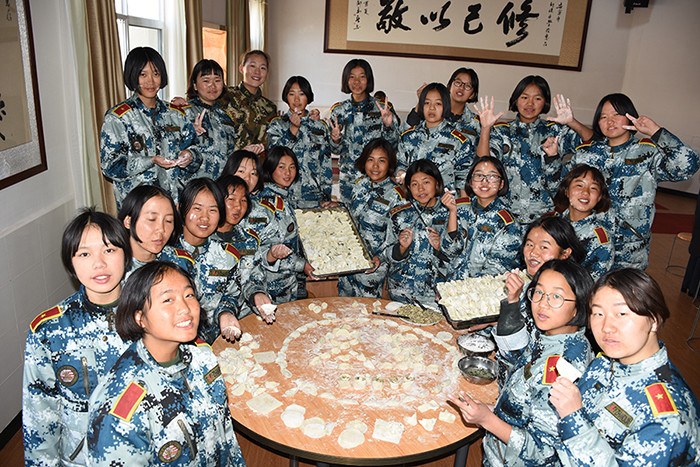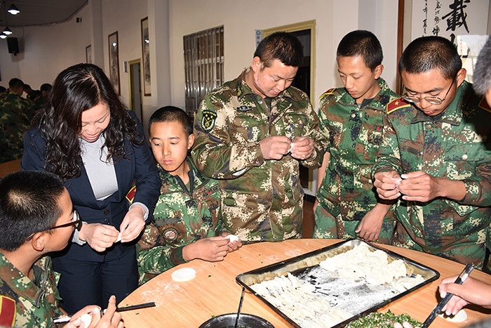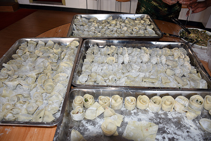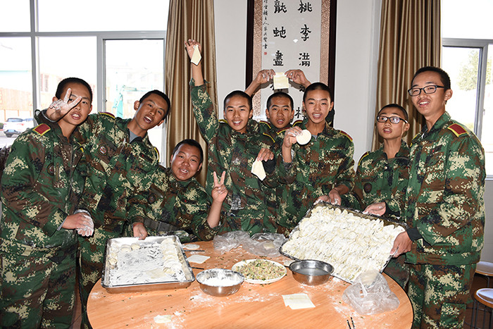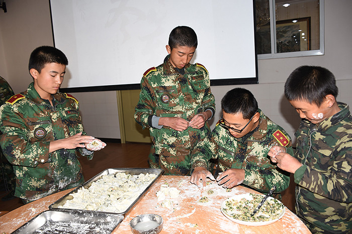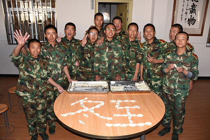 一大早,孩子們便欣喜若狂地來到食堂,迫不及待地想要大顯身手。副總教官王濤給孩子們講解了冬至的來歷和習俗后,各班主任和孩子們就一起開心地包起了餃子。你看,有的包、有的捏、有的說、有的笑、有的商討、有的相互切磋技巧......老師們一會兒做“督導員”,一會兒捋起袖子加入到包餃子的強大陣營當中,師生同樂的暖意沁人心脾。孩子們包出來的餃子花樣繁多、千姿百態(tài),有敦實厚重的,有別致精巧的,還有四不像的?粗槐P盤別出心裁但都裹滿愛意的餃子,看著一張張掛滿面粉但都笑容燦爛的面容,吃著香溢滿口的餃子,別樣的冬至喜慶連連。