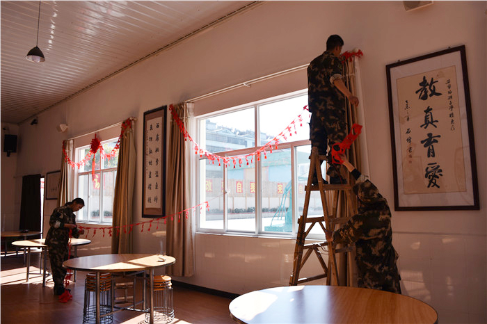 2018年2月13日至14日,為迎接狗年春節(jié)的到來,我校停課開始籌備新年的各項準(zhǔn)備工作。一大早,師生們就對學(xué)校進(jìn)行全面大掃除,隨后著手布置校園。老師和孩子們用中國結(jié)、氣球、彩帶、彩燈、紅燈籠、剪紙、春聯(lián)等飾品裝束著校園,經(jīng)過兩天的忙碌,校園內(nèi)張燈結(jié)彩,到處洋溢著濃郁的節(jié)日喜慶氛圍!大家都在以一顆翹首以盼的心等待春節(jié)的到來。