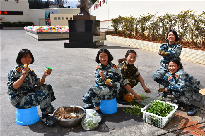 為了準(zhǔn)備豐富的年夜飯,老師和同學(xué)們從上午就開始忙碌著,一起幫學(xué)校廚師們打下手。同學(xué)們有的摘菜洗菜、有的學(xué)著釀丸子......到了下午,一盤盤色香味俱全的菜肴就呈現(xiàn)在大家面前了,伴隨著隆隆的鞭炮聲,年夜飯開始了。