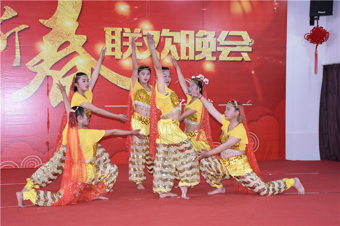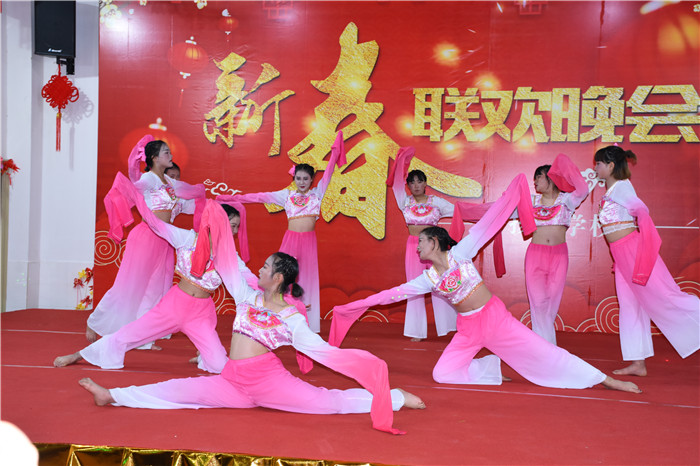 接著,伴隨著一排女生們帶來的開場舞《開門紅》,晚會正式拉開帷幕。之后的節(jié)目內(nèi)容豐富多彩,有舞蹈、小品、葫蘆絲演奏、合唱等。女生們舞姿溫婉靈動,男生們舞步大氣磅礴;剛?cè)岵、異彩紛呈的舞蹈迅速點燃了全場觀眾的熱情,把場上氣氛一次次推向高潮。小品《文明城市做文明人》更是把大家?guī)肓藲g樂的海洋。