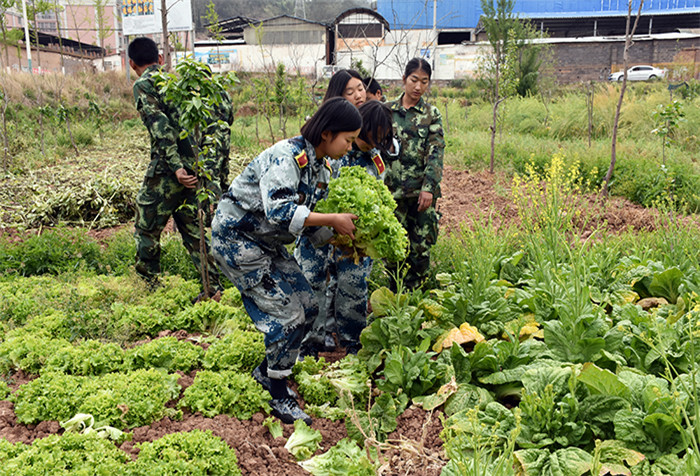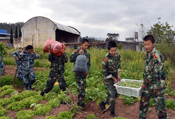 在老師的帶領(lǐng)下,孩子們興奮地走進(jìn)農(nóng)場(chǎng)開始干活。拔雜草、鋤地、澆水、摘蠶豆、豌豆、摘生菜、香菜..... 別看有的孩子年齡小,可干起活來十分帶勁,一個(gè)個(gè)忙得不亦樂乎?粗⒆觽兠β档纳碛,總教官毛積敏樂得呵呵直笑。
