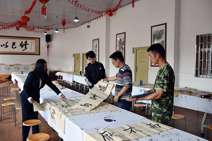 揮毫抒壯志,潑墨顯精神。以入校五個(gè)月作為學(xué)段劃分的分水嶺,分成兩個(gè)大組進(jìn)行比拼;顒(dòng)現(xiàn)場(chǎng),新生書寫有的雖然略顯稚嫩,但專注度和用心度一點(diǎn)也不輸給老生。只見孩子們揮毫潑墨,一絲不茍,盡其所能地展示著自己的書法才能。歷經(jīng)一小時(shí)的精彩角逐,孩子們留下了“志存高遠(yuǎn)”、“天道酬勤”“道法自然”、“見賢思齊”、“靜以修身”、 “登黃鶴樓” “陋室銘”等作品,一點(diǎn)一橫足見水平,一撇一捺盡顯風(fēng)骨,整體凝練樸茂,落款飄逸空靈,贏得了老師們的陣陣好評(píng)。最后,經(jīng)過(guò)評(píng)委老師們公正、公平、公開的評(píng)分,分別評(píng)出了一二三等獎(jiǎng)。