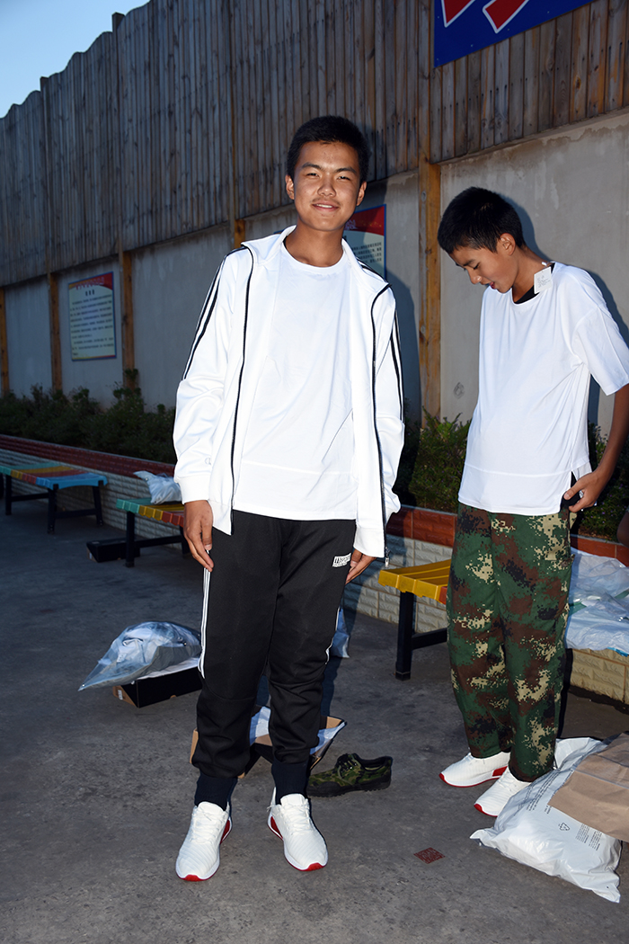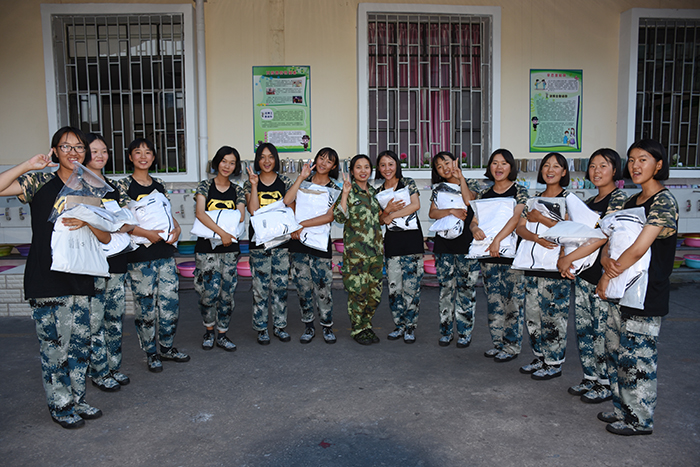 領(lǐng)到新裝的孩子非常興奮,不時(shí)說(shuō)著“真好看”、“好喜歡”、“好漂亮”、 “太幸福了”之類(lèi)的話語(yǔ),并迫不及待地?fù)Q上漂亮的校服,站在鏡子面前,左照照、右照照,是那么合身、那么帥氣、那么有朝氣。你瞧,潔白的T恤和外套,配上黑色的褲子,加上白色運(yùn)動(dòng)鞋,既莊重又活潑,既樸素又大方。我校使用的迷彩服和運(yùn)動(dòng)服作為指定服裝,相得益彰,一個(gè)嚴(yán)肅,一個(gè)休閑,正好符合學(xué)校的“嚴(yán)管理,善對(duì)待”的教學(xué)理念,更體現(xiàn)了學(xué)校的人文關(guān)懷。
