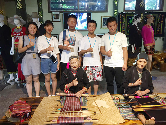 黎族以農(nóng)業(yè)為主,婦女精于紡織,至今還保留著傳統(tǒng)的手工藝,“黎錦”、“黎單”聞名于世,是中華文化寶庫中重要的瑰寶!身臨其境中,阿婆的紡織技術(shù)讓我們嘆為觀止,大家忍不住偷偷留下紀(jì)念。