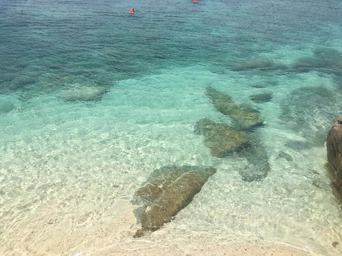 最后一天是自由活動。大家美美地睡到自然醒,慵懶地爬起了床,到海里玩水、捉蝦摸魚。玩累了,就在沙灘坐坐,享受海風(fēng)徐徐,著實體驗了一把浪漫的休閑生活!