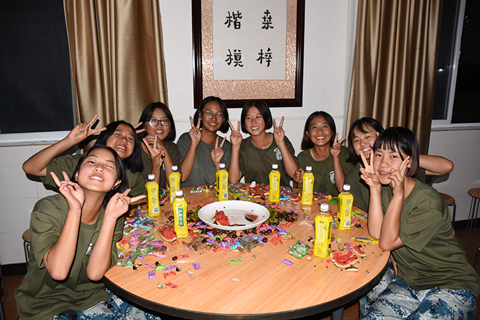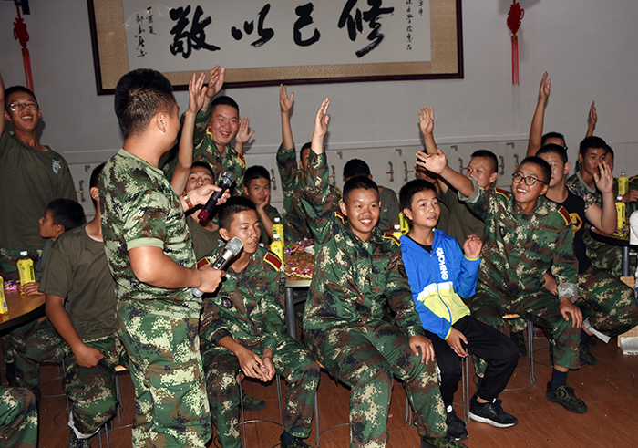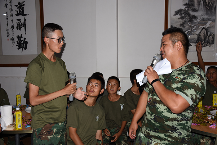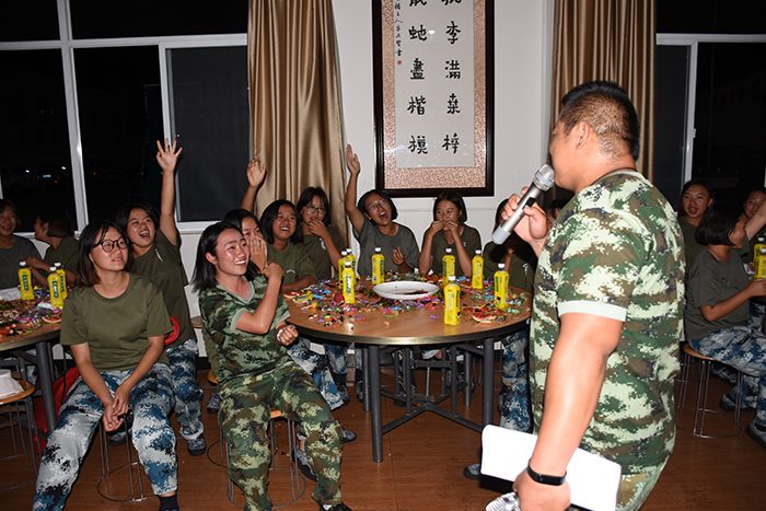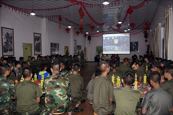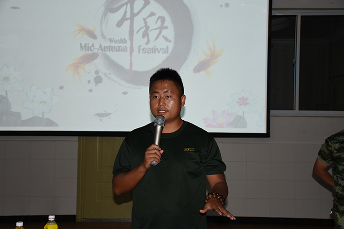 其間,晚會的主持人(副總教官王濤)把有趣的“猜謎語”貫穿其中,大家爭前恐后舉手搶答,或討論、或冥思,就為猜出謎底那一刻的滿足,拿到獎品的那份開心。整個晚會,孩子們一邊吃著老師們精心在家樂福挑選的月餅、果汁、零食,一邊欣賞著精彩紛呈的節(jié)目,樂在其中,氣氛非常熱烈。