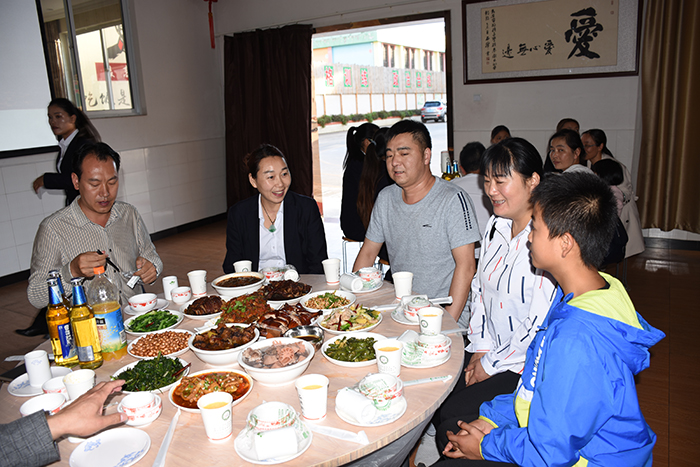隨后,在魯校長一聲“開席”的令下,大家開心地一邊品嘗著佳肴,一邊舉杯相互表達(dá)節(jié)日的祝福,只聽見一浪高過一浪的“祝爸爸媽媽中秋節(jié)快樂”、“祝全體師生中秋節(jié)快樂”的祝福響徹餐廳。席間,魯校長還帶領(lǐng)校領(lǐng)導(dǎo)親切地走到孩子們中間敬茶,和大家聊家常、話祝福。當(dāng)走到學(xué)校的兩個“小不點”身旁時,魯校長情不自禁地說著“你們長高了,也更懂事了”,還不時比劃著他們?nèi)胄R詠淼纳砀卟?粗虒W(xué)中嚴(yán)厲的校長,生活中卻是如此關(guān)切地噓寒問暖、和藹可親,像父母,又像兄長,也像朋友,同學(xué)們頓時覺得非常溫暖。