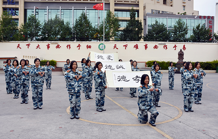 分列式的同學(xué)們步伐鏗鏘、隊(duì)形整齊、口號(hào)嘹亮、自信昂揚(yáng),展現(xiàn)了良好的精神風(fēng)貌;擒敵拳方陣的同學(xué)們也毫不遜色,剛勁有力的踢腳勾拳,嫻熟連貫的軍體動(dòng)作,展現(xiàn)了頑強(qiáng)拼搏和勇做時(shí)代弄潮兒的決心;女生方隊(duì)的手語操《三德歌》,更是把孝德、誠德、愛德的中華民族優(yōu)秀傳統(tǒng)美德表現(xiàn)得淋漓盡致。大家不禁心潮澎湃,日常的苦與累,值!