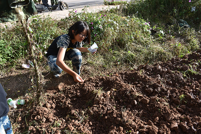 孩子們也不例外。在這一季,聽說又要開始新一輪的種植時,孩子們別提有多高興了。當(dāng)周末的第一批孩子下地勞作時,其他孩子便羨慕不已,翹首以盼,希望自己也能親臨菜園,感受四季的驚喜與神秘,體驗自然的美妙與感動。真正輪到自己時,一個個連跑帶顛地來到菜地,開心地干起活來。孩子們既有分工又有合作,有的鏟除過季的作物梗、有的挖地、有的打塘、有的播種、有的施肥、有的澆水……一個個充滿了干勁,忙碌著,商量著,菜園里頓時變得熱鬧起來,一幅緊鑼密鼓編織的耕種圖出現(xiàn)在大家眼前。