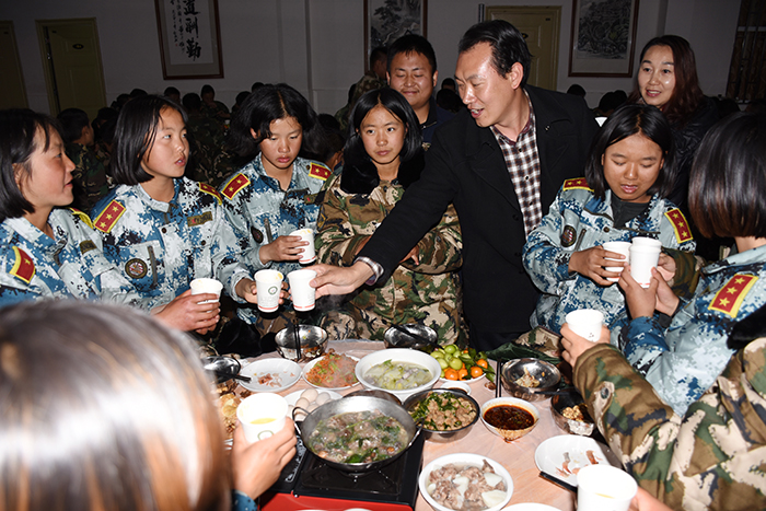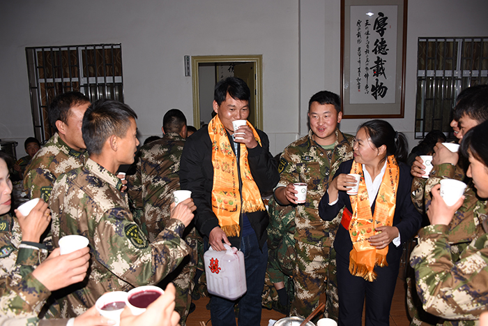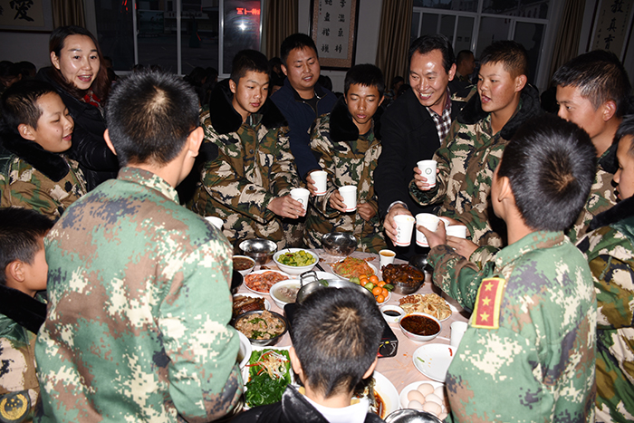 周雪和趙艷老師的愛人因?yàn)樵诓筷?duì)工作和正在部隊(duì)工作,看到眼前的迷彩,不禁想到了自己的軍營生活,特地囑咐孩子們要在這里好好學(xué)習(xí),早日回家,做一個(gè)孝敬父母、對社會(huì)有用的人才。趙艷老師的愛人還表示,如果將來有學(xué)生能到他所在的部隊(duì)服役,那他一定會(huì)熱烈相迎,在部隊(duì)做戰(zhàn)友,做兄弟,共同為國家出力。情真意切的一席話,引得孩子們更加向往軍營生活。