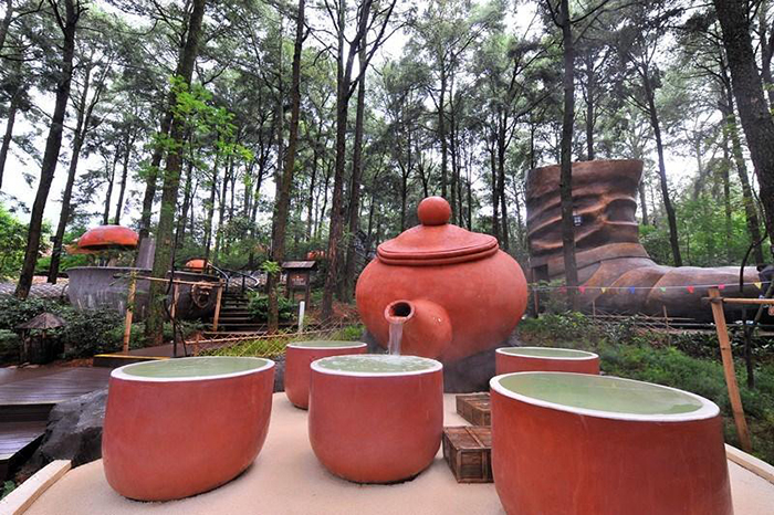 安寧溫泉素有“天下第一湯”的美譽(yù),金方森林溫泉地處其中,它是連片原始森林中的露天溫泉,森林覆蓋率達(dá)79.29%。溫泉依山而建、順山勢(shì)或起或臥、或上或下,37個(gè)溫泉池錯(cuò)落有致地分布于60畝的森林中,如顆顆寶石斑斕多彩,似粒粒翡翠晶瑩剔透。溫泉中小溪潺潺、瀑布懸掛、起伏迭宕,穿過座座小橋,在森林中婉如一條銀色的玉帶纏繞。一座座奇石怪巖,在花草的蔟擁下,或蹲于溪邊聽瀑、或立于池邊觀濤,清新幽深的森林之景讓人久久不愿離去。溫泉中驚險(xiǎn)刺激的水上項(xiàng)目、標(biāo)準(zhǔn)游泳池、溫湯戲水池、地?zé)峒案鞣N特色功能。r花、牛奶、薄荷、檸檬、中草藥、親親魚療等)、露天休息亭等,更是完美再現(xiàn)了森林浴的文化。溫泉水溫適中,在42度—45度之間,水質(zhì)潔凈,泉水中含有大量的碳、鈣、鎂、鉀、磷等微量元素及礦物質(zhì),是不可多得的健身養(yǎng)心、體閑娛樂的人間仙境,也是當(dāng)今旅游的極佳境地,人們對(duì)它青睞有加。故金方森林溫泉也被譽(yù)為“一顆璀璨的綠寶石”。