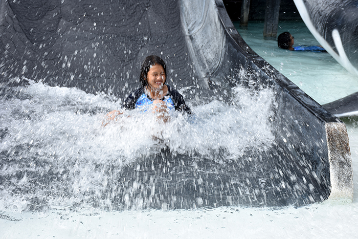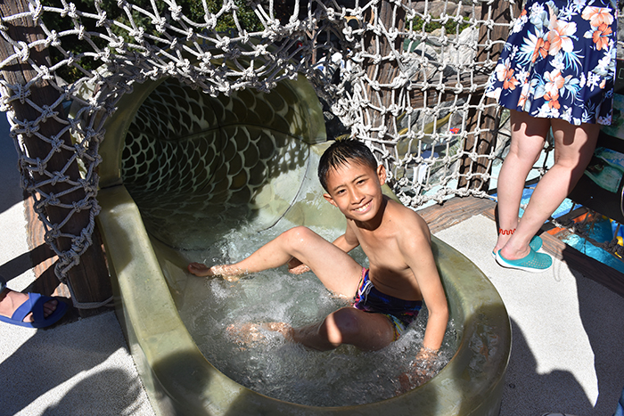 泳池中玩累了,孩子們稍作休息,便又元?dú)鉂M滿地開始了各種驚險(xiǎn)刺激的水上項(xiàng)目挑戰(zhàn)。在湍急的出水口,在急速滑下而濺起的浪花中,孩子們開懷大笑又有些驚險(xiǎn)的表情被記錄了一次又一次。同一個(gè)項(xiàng)目,一遍又一遍玩耍的熱情,一次又一次開心的尖叫,讓我們感受到了孩子們火一樣的青春。