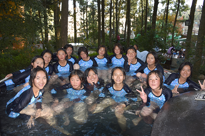 17日午飯后,第一批女生在老師的帶領(lǐng)下打了頭陣,先行到達(dá)溫泉感受清幽的森林、婉轉(zhuǎn)的鳥鳴、林間的漫步、水中的SPA.....