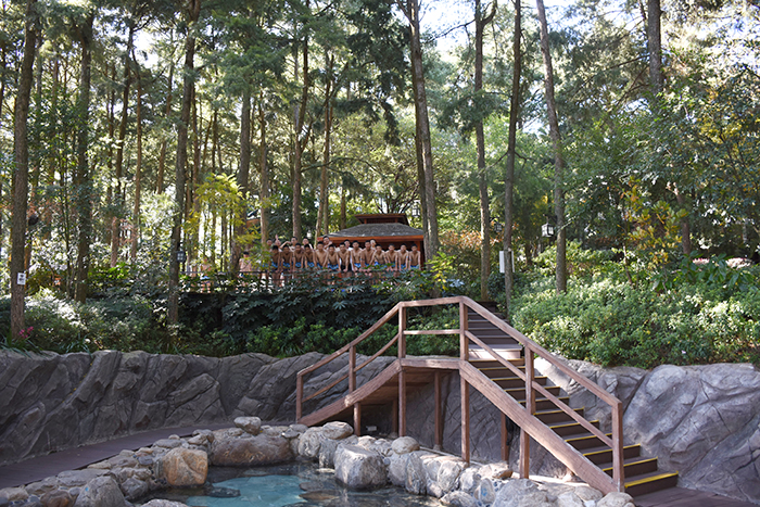 溫泉是沐浴,但有如說是沐浴,不如說是“凈心”。泡池中,熱騰騰的蒸汽氤氳滿池,走進(jìn)她,將自己浸入溫暖的泉水之中舒展,再舒展,在湯中或閑目臥養(yǎng)、或禪坐清波、或抬頭看看藍(lán)天白云,或是留神欣賞下稠密樹葉間灑落下來的點(diǎn)點(diǎn)陽(yáng)光,亦或是看看曲徑通幽的小道上走過的路人,都會(huì)將那鬧市的喧囂、胸中的愁煩、身心的疲憊蕩滌得無影無蹤,整個(gè)人都感到了純粹的放松與寧?kù)o。