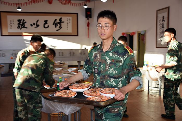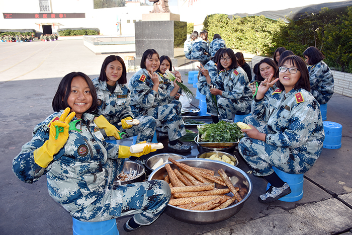 為了準(zhǔn)備豐富的年夜飯,老師和同學(xué)們從上午就開始忙碌著,一起幫學(xué)校廚師們打下手。同學(xué)們有的撿菜,有的洗碗,有的洗菜......到了下午,一盤盤色香味俱全的菜肴就呈現(xiàn)在大家面前,伴隨著隆隆的鞭炮聲,年夜飯開始了。