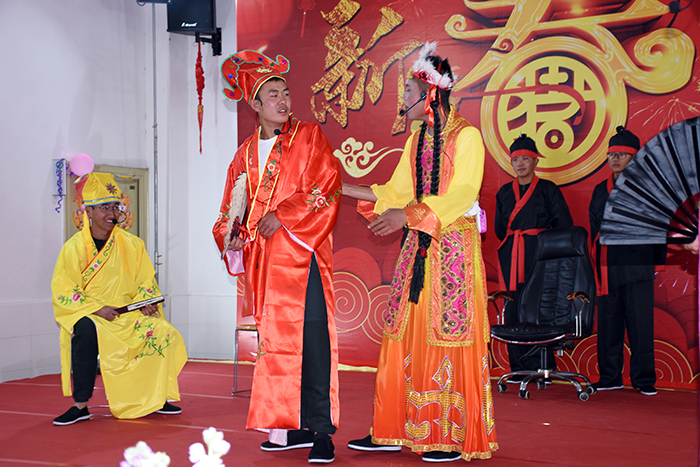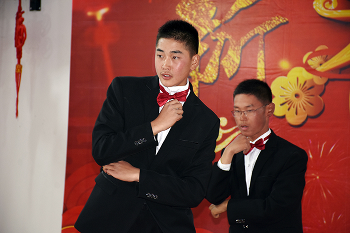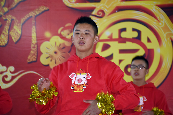 隨后,由學(xué)生王璐瑤、王佳曉和老師李月、王清恒主持的舞蹈、小品、朗誦、獨(dú)奏等14個(gè)精彩節(jié)目輪番登場(chǎng)。伴隨著一班、三班、十六班帶來的開場(chǎng)舞《恭喜發(fā)財(cái)》,晚會(huì)正式拉開帷幕,大家在熱情的旋律中開心地感受著濃郁的過年氛圍。