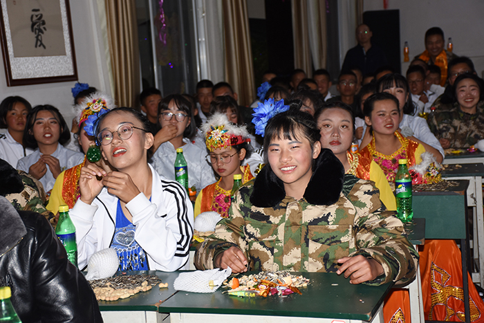 十二班表演的極具民族特色的彝族舞蹈《阿細(xì)跳月》,一出場(chǎng)就吸引了大家的眼球,一群彝族阿哥阿妹熱情似火地翩翩起舞,他們舞出了彝族人民的淳樸好客,更舞出了對(duì)美好生活的無限向往。