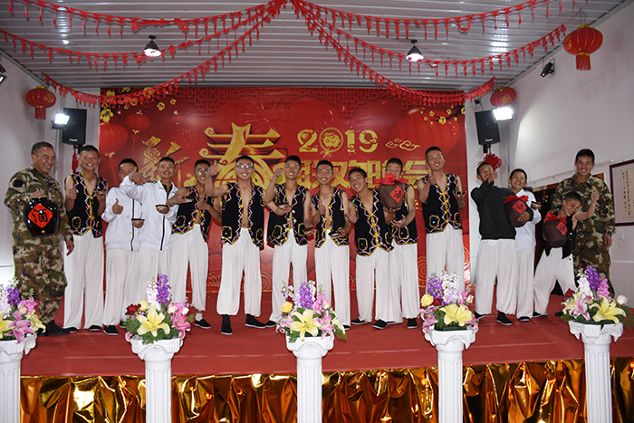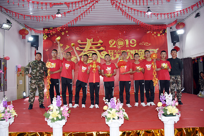 瑞犬凱歌辭舊歲,金豬送福迎新春。2019年2月5日(大年初一)晚,好孩子學(xué)校多功能廳成為了師生聯(lián)歡的舞臺(tái)、歡樂的海洋,我!2019年春節(jié)聯(lián)歡晚會(huì)”在這里隆重舉行。學(xué)校校長(zhǎng)魯植、副校長(zhǎng)兼總教官毛積敏、辦公室主任單官昱、總務(wù)主任李月、辦公室副主任施頻頁、副總教官王濤、張汝云等中層以上干部及老師參加了活動(dòng)。我校畢業(yè)生李哲、韓凈宇同學(xué)及其父親也出席了本次晚會(huì)。