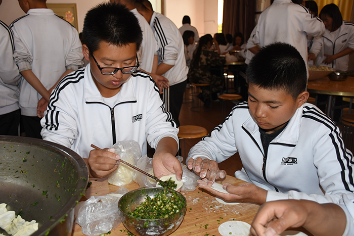 好孩子學(xué)校師生包餃子過(guò)新春