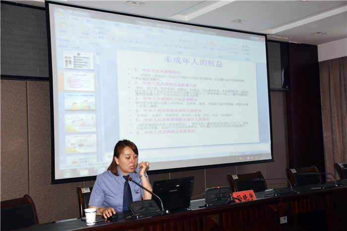 緊接著,專門負(fù)責(zé)未檢工作的檢察官孫曉宇以“未成年人的權(quán)益保護(hù)”為主題開展了法治專題講座。通過播放動漫視頻,用“藥家鑫”、“李天一”等典型案例釋法說理,向同學(xué)們講述未成年人不良行為的危害以及如何運用心理學(xué)緩解不良情緒,處理危機事件。同學(xué)們?nèi)虩崆閰⑴c,積極舉手回答問題,現(xiàn)場氣氛十分熱烈。