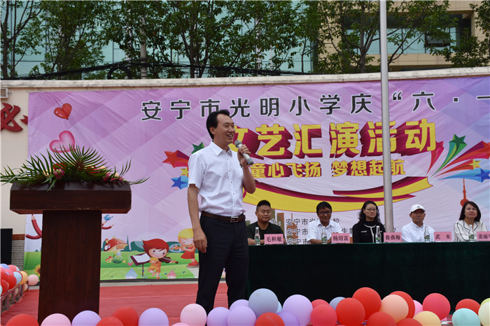 2019年5月31日上午,安寧市光明教育集團(tuán)慶“六•一”兒童節(jié)活動(dòng)在好孩子學(xué)校隆重舉行!傲•一”是孩子們的節(jié)日,這是一個(gè)充滿希望而又歡樂的季節(jié),讓孩子們度過(guò)一個(gè)歡快而有紀(jì)念意義的節(jié)日是非常有必要的。為此,安寧市光明學(xué)校、東湖小學(xué)、童緣幼兒園、好孩子學(xué)校與安寧市光明社區(qū)、柳樹社區(qū)、武家莊社區(qū)等單位聯(lián)合舉辦“童心飛揚(yáng),夢(mèng)想起航”為主題的大型文藝匯演活動(dòng)。家長(zhǎng)、老師和小朋友們滿懷喜悅,800余人齊聚一堂,歡度這個(gè)童年的盛會(huì)。
