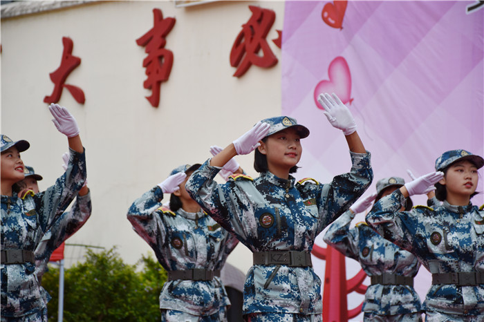 如果說(shuō)前期的節(jié)目是一次又一次的高潮,那最后好孩子學(xué)校女生方隊(duì)出場(chǎng)表演的《青春集合在軍旗下》,則把高潮又推向了另一更高度。舞蹈展現(xiàn)了孩子們積極、向上、樂觀的精神風(fēng)貌和小軍人的別樣風(fēng)采,吸引了臺(tái)下觀眾的眼球,贏得了場(chǎng)下觀眾陣陣熱烈掌聲。