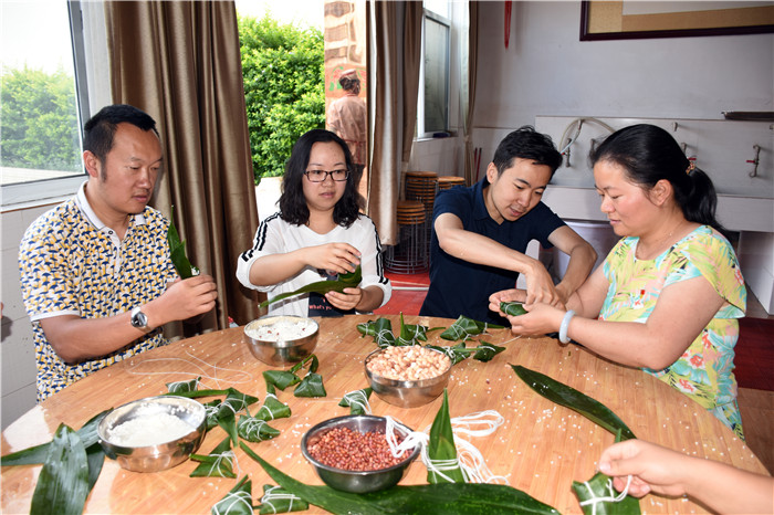 傍晚,一桌桌色香味美的飯菜全部就緒,一個個飄著濃濃葉香的粽子也呈現(xiàn)在餐桌上。孩子們興高采烈地圍坐在一起,吃著豐盛的晚餐、品嘗著獨特香味的粽子,不時向老師道祝福,和同學相共勉。在攝像機的鏡頭下,孩子們還爭先恐后地向遠方的爸媽送祝福,希望他們端午安康!值得一提的是,在端午當天,我校還迎來了畢業(yè)生楊鑫誠回校探望,和師生們也一起共慶端午、共話佳節(jié)。