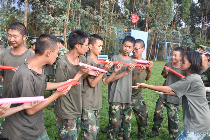 飯后稍作休整,一場足球過后,便是此行的重點活動——戶外拓展訓(xùn)練。拓展活動在老師的耐心講解和簡短的“戰(zhàn)前”熱身運動后拉開了帷幕。孩子們分成兩隊比拼,在各隊隊長的帶領(lǐng)下,伴隨了各隊振奮人心、催人奮進的口號和加油聲,同學(xué)們陸續(xù)挑戰(zhàn)了由學(xué)校老師精心準備的不倒森林、巨人腳、珠行萬里、鼓動人心等團隊項目;顒又,孩子們始終保持飽滿的熱情、高昂的斗志、認真的態(tài)度,積極參與,用心體會,努力完成著每一個項目。雖然在挑戰(zhàn)過程中,有的孩子有過膽怯、有過害怕,但在老師的幫助和隊友們響亮的加油聲中,他們沒有退縮、沒有放棄,憑借著頑強的毅力、團結(jié)協(xié)作的精神一一通過了重重難關(guān)。