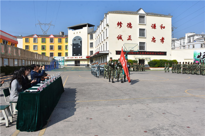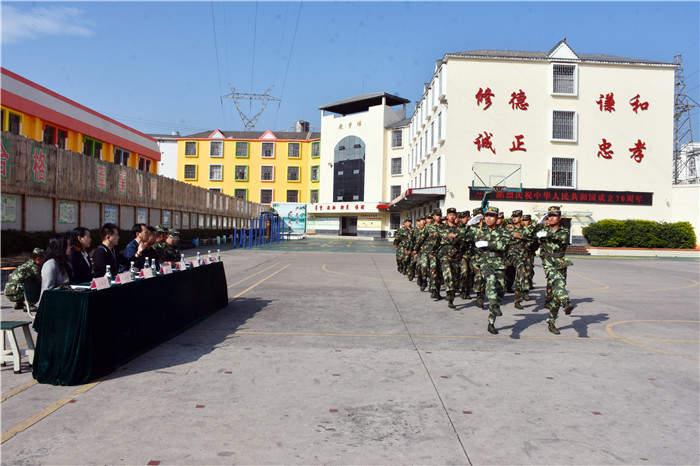 最后,學(xué)校魯植校長和從深圳遠(yuǎn)道而來的畢業(yè)生(丁同學(xué))爸爸分別作了講話。魯校長講到:“在這個舉國歡慶的日子里,我校以軍訓(xùn)匯演的方式向祖國70華誕獻(xiàn)禮我感到非常高興。世界并不太平,作為中國的一個子民,身在這樣的國度,我們都是幸福的。今天看到孩子們的表現(xiàn),我更是欣慰!希望你們明白來這里學(xué)習(xí)的目的,珍惜這里的時光,在花季的年齡好好學(xué)習(xí),再接再厲。除陰霾,揚(yáng)正氣,將來為祖國發(fā)展添磚加瓦、增光添彩!