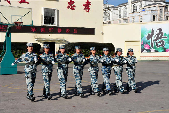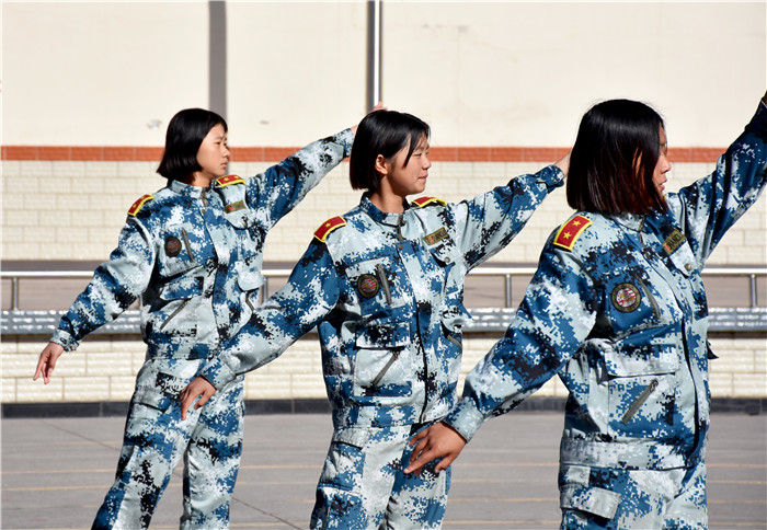 基本隊(duì)列動作表演結(jié)束后,各方隊(duì)在教官的指揮下進(jìn)行了擒敵拳、應(yīng)急棍、手語操、女兵操等表演。同學(xué)們整齊的隊(duì)伍、精準(zhǔn)的動作、昂揚(yáng)的士氣、嘹亮的軍歌、優(yōu)美的旋律、燃燒的激情贏得了陣陣掌聲。