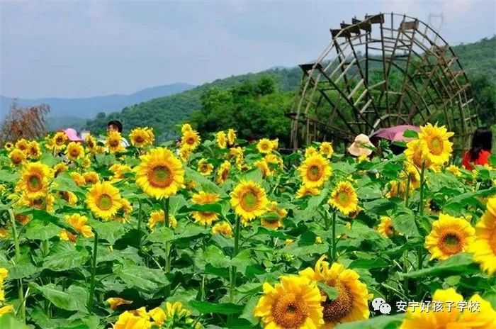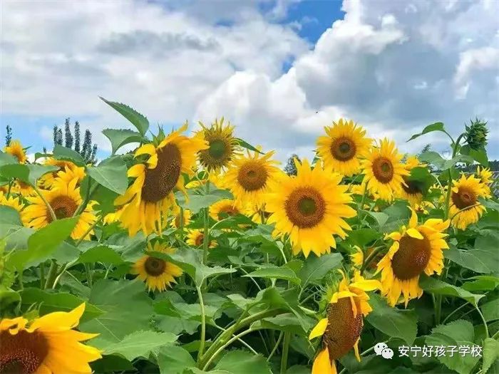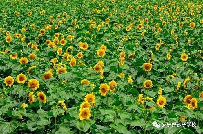 在無數(shù)個日日夜夜里,向日葵用它那高高昂起的花盤,無聲的記錄著太陽孜孜不倦滋養(yǎng)大地的輝煌,也賦予了這片土地蓬勃生機。那些斑斕濃烈的色彩,豐富抽象的圖形,縈紆著我們生存里永遠的渴望。孩子們在這片美不勝收的花海里,不自覺的淪陷其中,不厭其煩地擺拍,讓心在金色花海暢游。