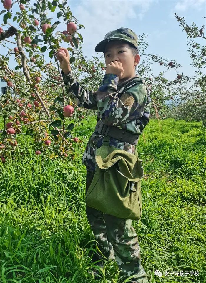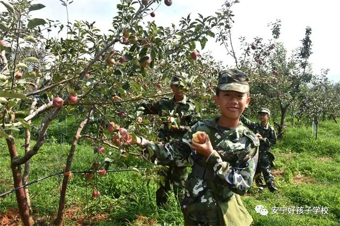 第一站,便來到了綠色而生態(tài)的有機(jī)蘋果基地,此基地的蘋果知名度很高,都是來自昭通大山里的優(yōu)質(zhì)品種。在蘋果成熟的季節(jié),空氣中都彌漫著濃郁的果香,走在通往果園的小路上,孩子們顧不上欣賞美麗的田園風(fēng)光,興奮地看著兩旁的果園里那又大又紅的蘋果,不禁唇齒生津!巴瑢W(xué)們,看好再摘,看中哪個(gè)摘哪個(gè),不能浪費(fèi)”!在老師的一聲號(hào)令下,同學(xué)們分組有序地鉆進(jìn)果園采摘起來。烈日當(dāng)空,清甜脆爽的蘋果無疑是消暑佳品,同學(xué)們摘下自己喜歡的又大又紅的蘋果,便像“小饞貓”一樣大快朵頤起來。孩子們滿足地吃著鬧著,這一刻,他們似乎品嘗到的是辛勤勞動(dòng)的快樂,較之蘋果本身的美味,這份滋味更值得孩子們?cè)谌松拿恳浑A段細(xì)細(xì)品味。