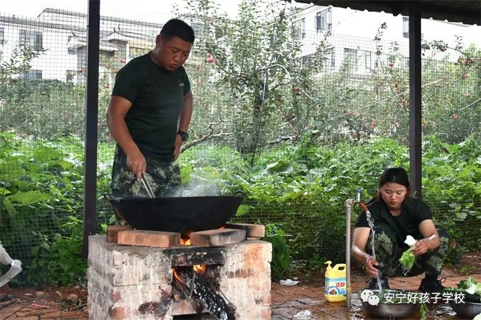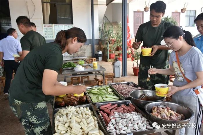 夕陽西下,孩子們?cè)诶蠋煹膸ьI(lǐng)下準(zhǔn)備晚餐。拾柴、生火、洗菜、炒菜......大家各展所長,整個(gè)草灘上變得熱鬧起來。不一會(huì)兒,一陣陣香味撲鼻而來,一盤盤讓人垂涎欲滴的菜肴便呈現(xiàn)在同學(xué)們眼前!伴_席!”隨著尹校長的一聲令下,大家迅速行動(dòng)起來,紛紛舞動(dòng)著筷子,爭相品嘗著別樣的晚餐。