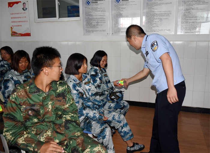 其間,呂警官也多次發(fā)問(wèn),在我們還不能通過(guò)選擇去處理情緒的時(shí)候,又應(yīng)做些什么來(lái)管理自己的情緒呢?同學(xué)們各抒己見(jiàn),爭(zhēng)相發(fā)言,呂警官聽(tīng)后直夸同學(xué)發(fā)散思維強(qiáng),表達(dá)能力好,十分聰明可愛(ài),忍不住多次給孩子們發(fā)小禮品作為獎(jiǎng)勵(lì),甚至親切地和孩子們現(xiàn)場(chǎng)玩起了魔方游戲。