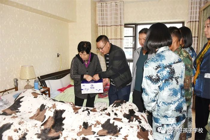 由于時(shí)間關(guān)系,雖然每到一戶看望老人的時(shí)間不是很長,但師生們的一聲問候,幾句細(xì)語,微不足道的生活用品.....這些小小的舉動,卻像大大的太陽溫暖著老人們的心,讓老人們眼里不時(shí)泛起了淚花,緊握師生的手遲遲不愿松開!
