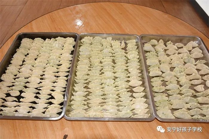 下午三點(diǎn),活動(dòng)在學(xué)校餐廳舉行。食堂廚師們把餃子餡調(diào)好后,各班主任和同學(xué)們就一起開心地包起了餃子。老師們一會(huì)兒做“督導(dǎo)員”,一會(huì)兒捋起袖子加入到包餃子的強(qiáng)大陣營(yíng)當(dāng)中,師生同樂的暖意沁人心脾。