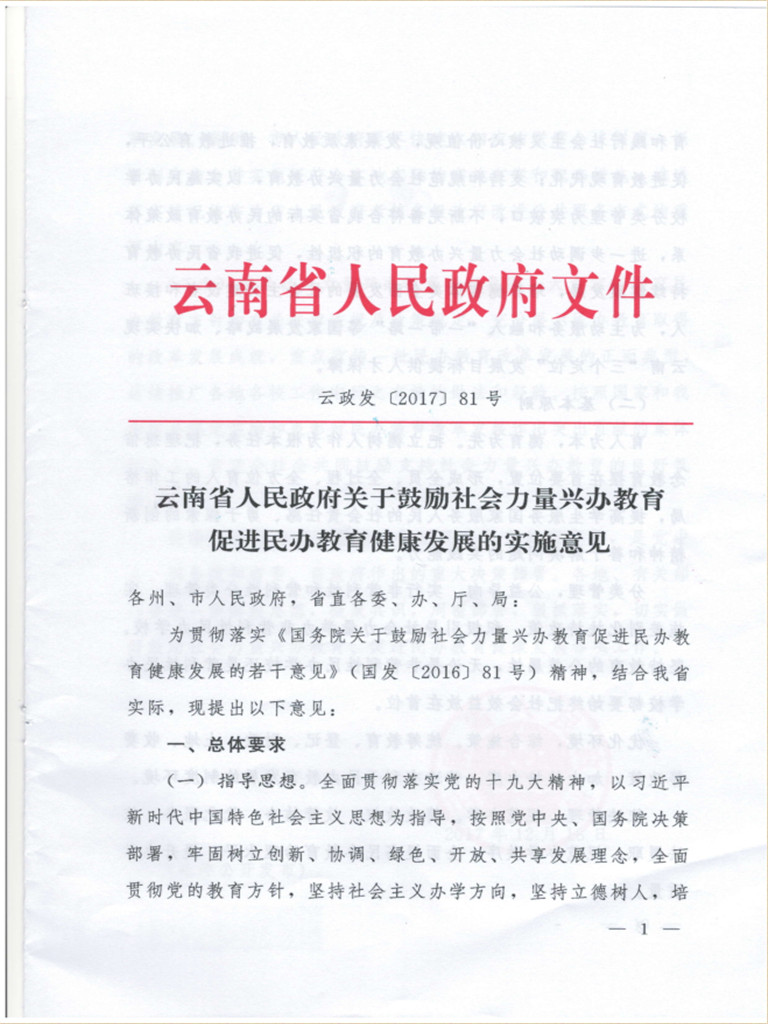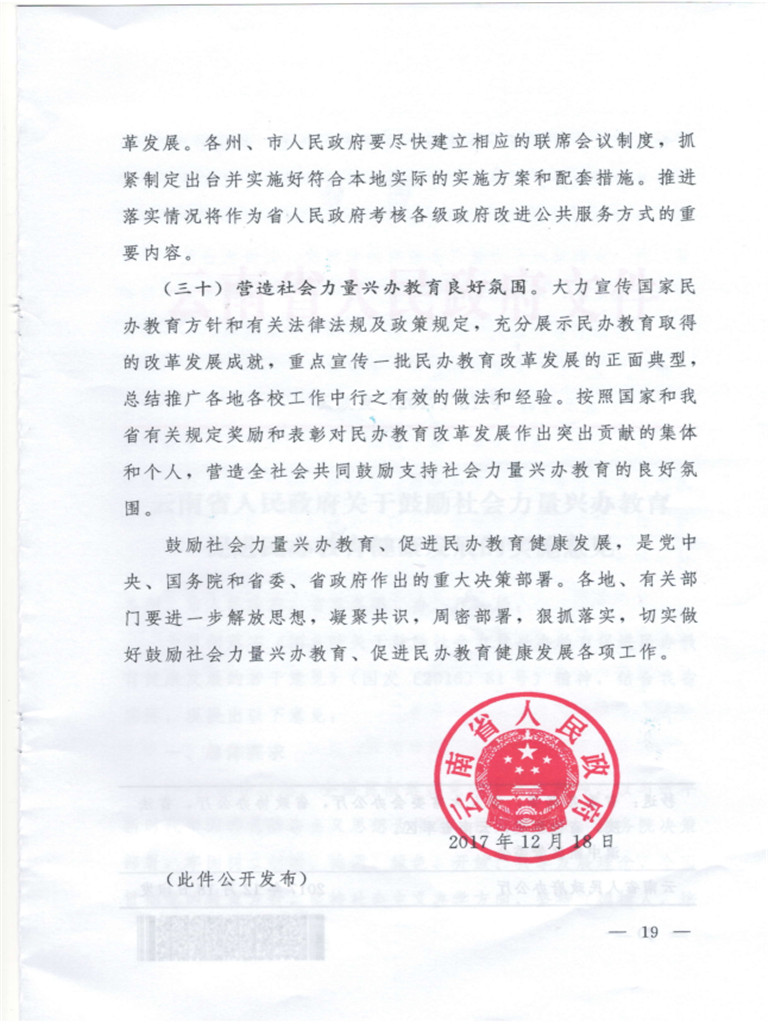 云南省人民政府關(guān)于鼓勵(lì)社會(huì)力量興辦教育促進(jìn)民辦教育健康發(fā)展的實(shí)施意見