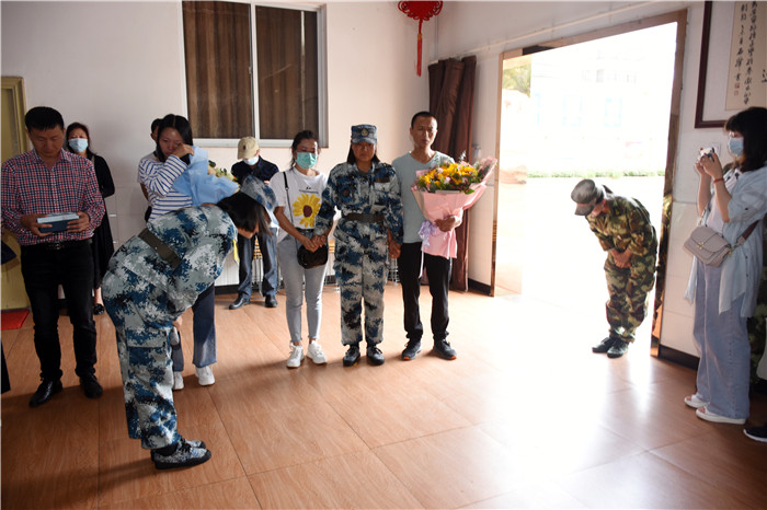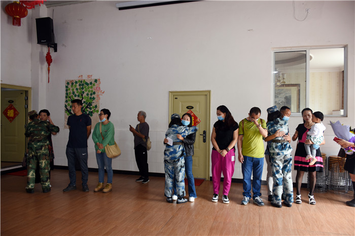 家長在老師的帶領(lǐng)下走進多媒體教室,隨著一聲“向后轉(zhuǎn)”的口令后,8位孩子飛一般地沖到父母面前,相擁而泣,哭成一片……這種感動的場面感染著在場的每一個人!