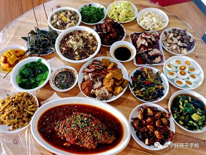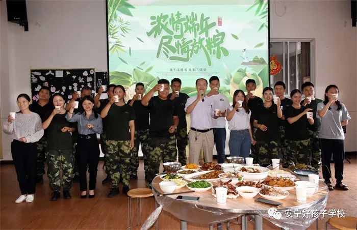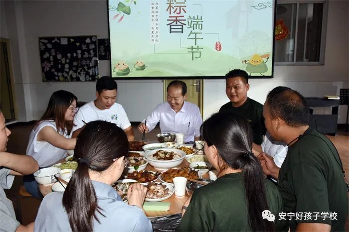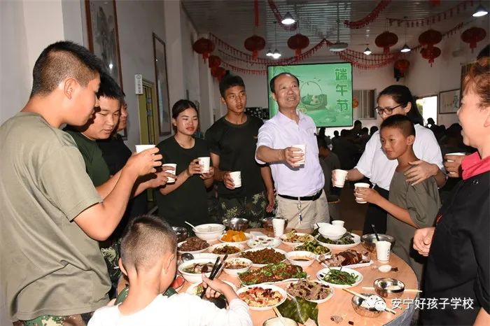 傍晚,一個(gè)個(gè)香氣撲鼻的“粽子”新鮮出爐了,一桌桌色香味俱全的美食便呈現(xiàn)在大家眼前。餐前,學(xué)校理事長(zhǎng)袁戰(zhàn)穩(wěn)向全體師生致以節(jié)日的問(wèn)候,希望大家都能品嘗時(shí)光的香甜,在往后的日子里平和安康。隨后,在袁理事長(zhǎng)“開(kāi)席”的一聲令下后,大家共同舉杯,互道“端午節(jié)安康”,晚宴正式開(kāi)始了。孩子們迫不及待地吃著豐盛的晚餐,品嘗著自己的“作品”,笑容分外甜蜜。席間,袁理事長(zhǎng)還親切地走到孩子們中間敬茶祝福。感受著袁理事長(zhǎng)關(guān)切的話語(yǔ)、和藹的笑容,同學(xué)們心里暖暖的!鏡頭下,孩子們還紛紛向老師和遠(yuǎn)方的父母送去節(jié)日的祝福,祝愿他們端午安康。整個(gè)場(chǎng)面洋溢著濃郁的節(jié)日氛圍。