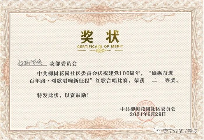好孩子學(xué)校參加柳樹社區(qū)“砥礪奮進(jìn)百年路 頌歌唱響新征程”紅歌比賽榮獲二等獎