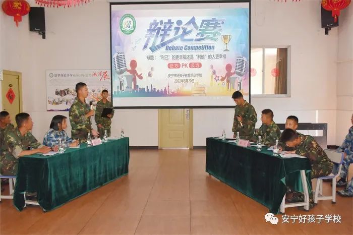 為培養(yǎng)學(xué)生的語言表達(dá)能力、應(yīng)變能力、分析解決問題能力,以及團(tuán)隊(duì)協(xié)作意識(shí),2022年5月20日,在這個(gè)有著美好寓意的日子,在安寧市第七個(gè)“520中小學(xué)生心理健康日”之際,我校舉辦了以“利己的人更幸福還是利他的人更幸!睘檗q題的校園辯論賽。